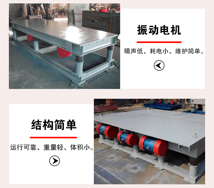 振實臺在使用過程中,可以通過調(diào)節(jié)振動電機激振力大小、來使平臺上物料實現(xiàn)理想的形式。振動電機為激振源,噪聲低、耗電小、維護簡單。ZDP振實臺結(jié)構(gòu)簡單。運行可靠、重量輕、體積小、安裝簡便。